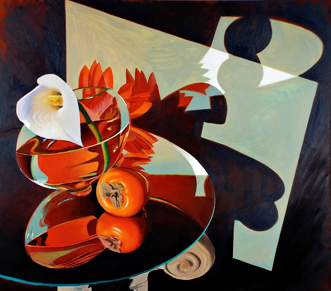 “Persimmon & Calla“, Oil on Canvas, 56 x 64”